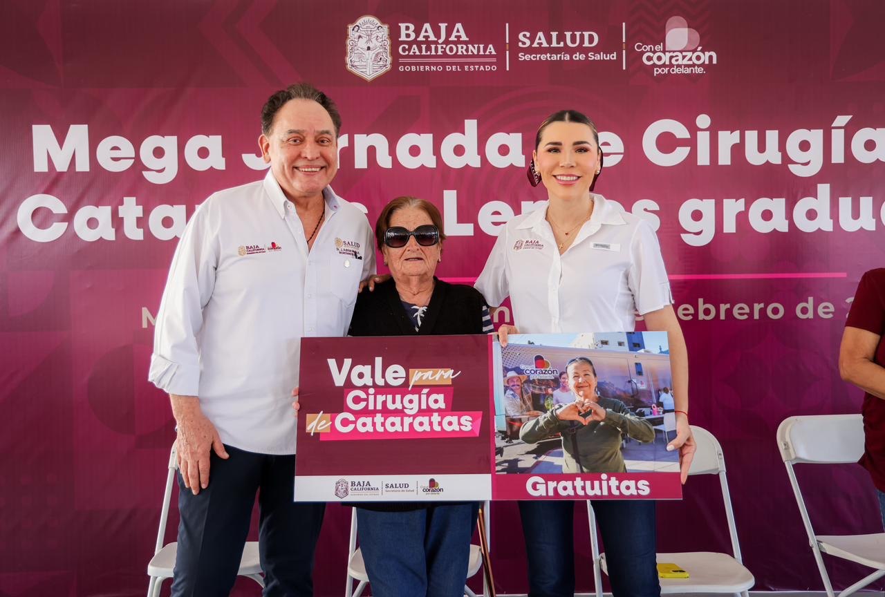 Baja California se ha consolidado como una de las entidades con mayor atención en salud visual en el país, al registrar más de 4 mil 500 cirugías de cataratas realizadas en lo que va de la actual administración estatal, informó la gobernadora Marina del Pilar Avila Olmeda durante una jornada gratuita de intervenciones y consultas optométricas en la capital del estado.