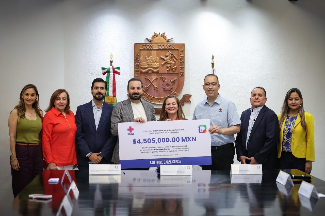 El Municipio de San Pedro Garza García entregó un donativo superior a 4 millones 505 mil pesos a la Cruz Roja Mexicana para fortalecer su operación y garantizar la atención de emergencias de forma permanente, las 24 horas del día y los siete días de la semana.
